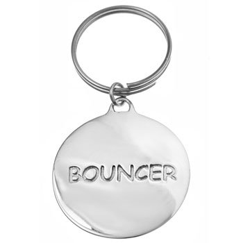 Custom made, round sterling silver tag comes with your dogs name printed on the front and additional contact information engraved on the back.